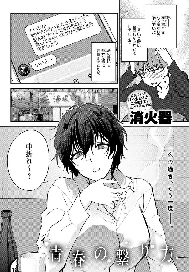 • 前作も大好きなので続編が出てとても嬉しい。 タバコを吸う姿が似合っていておっぱいのついたイケメンの女性が攻められて喘ぐシチュがたまりません。 S SEXの最中はずっとセクシーな顔をしているのに終わったらまたイケメンの顔に戻るのも大好きです。 最後の斉木の「次から家でやんない?」って言ったあとの優しい顔と「俺はあの頃からちゃんと先輩のお気に入りだったのだろう。俺が勝手に諦めてただけで」の赤木のセリフに少しウルッとしてしまったのは私だけでしょうか。